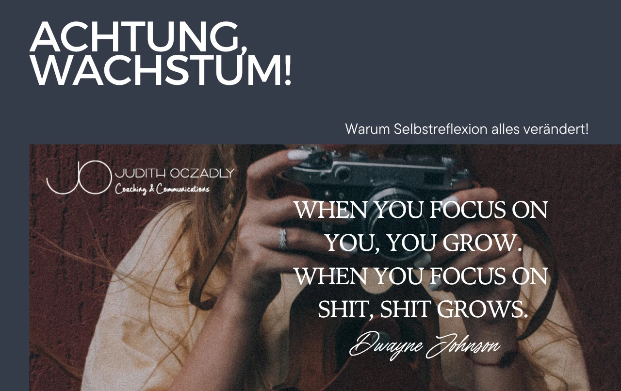 Wer sich nur auf Probleme, Stress und äußere Erwartungen konzentriert, erlebt mehr davon. Wer hingegen beginnt, sich selbst zu reflektieren, die eigenen Gedanken kritisch zu hinterfragen, zu verstehen, was ihn/sie antreibt – öffnet die Tür für echtes Wachstum - für persönliches Wachstum.
